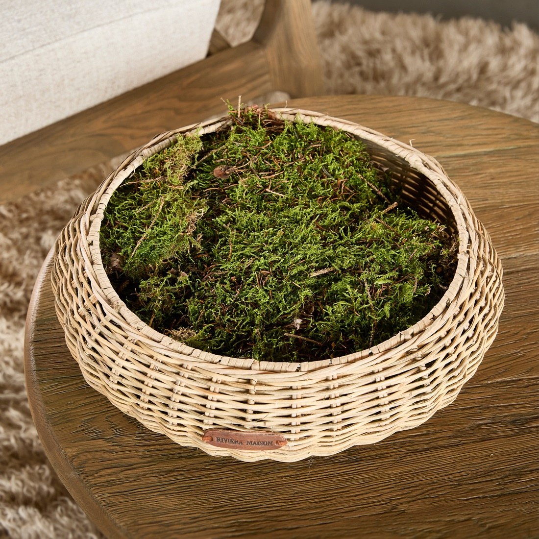 De schaal is volledig naar eigen stijl in te vullen. Gebruik het als basis voor seizoensdecoratie, een plantje, droogbloemen of laat het juist leeg voor een minimalistische, serene uitstraling. Het subtiele label aan de voorkant geeft een stijlvolle finishing touch die het mandje perfect maakt voor gebruik op een salontafel, dressoir, vensterbank of in een sfeervol stylinghoekje.