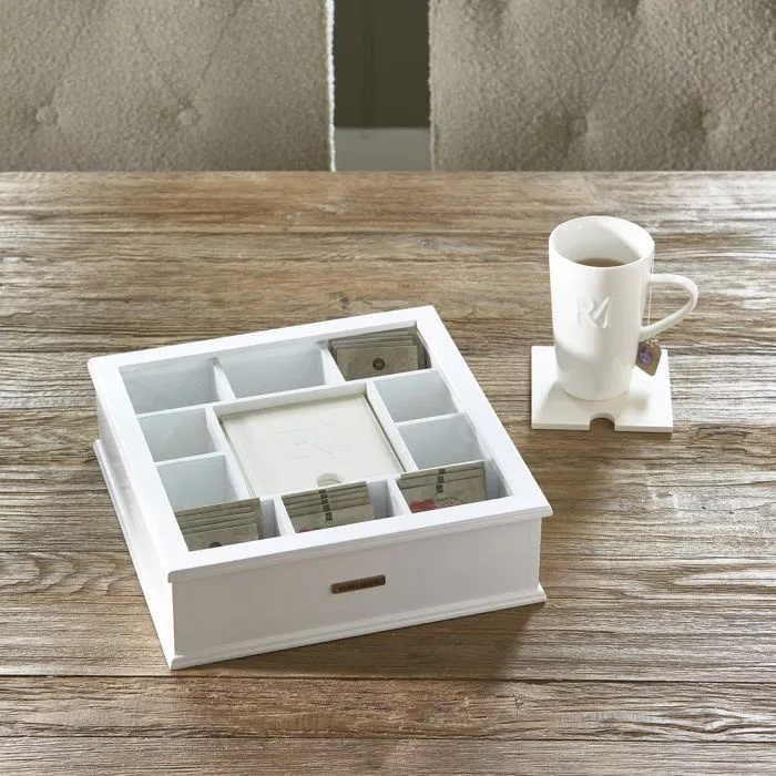 TEA BOX WITH MONOGRAM COASTERS 6PCS