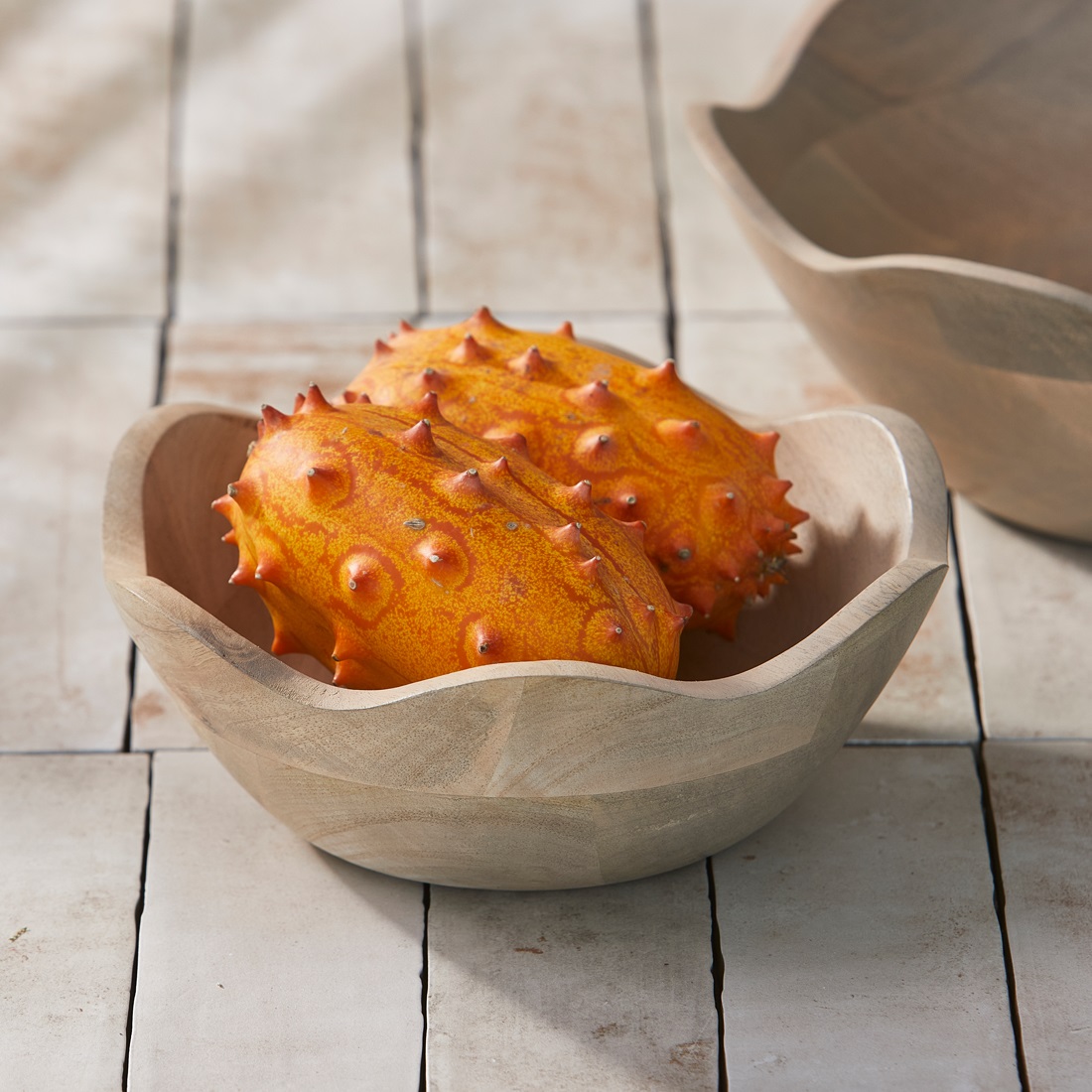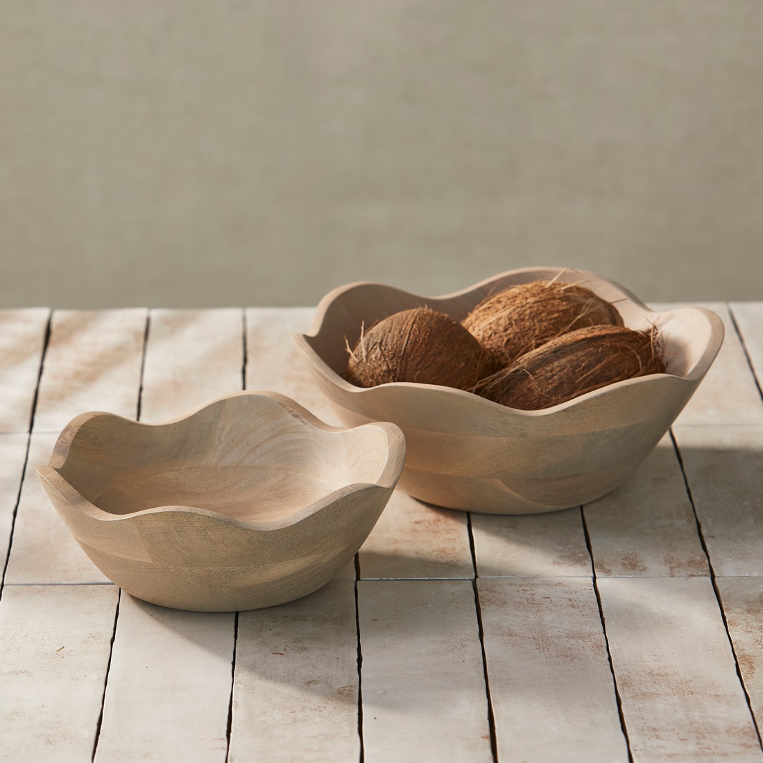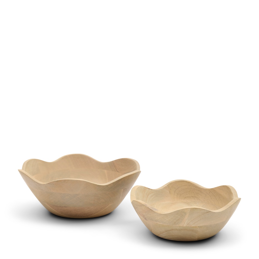 Deze set van twee kommen, vervaardigd uit mangohout, brengt een uniek accentelement op uw tafel. Het golvende ontwerp voegt een moderne touch toe, terwijl de natuurlijke uitstraling een warme en gezellige sfeer creëert in elke ruimte. Met een diameter van 10 cm en 28 cm zijn ze ideaal voor zowel het serveren van lekkernijen als als decoratieve stukken in uw interieur.