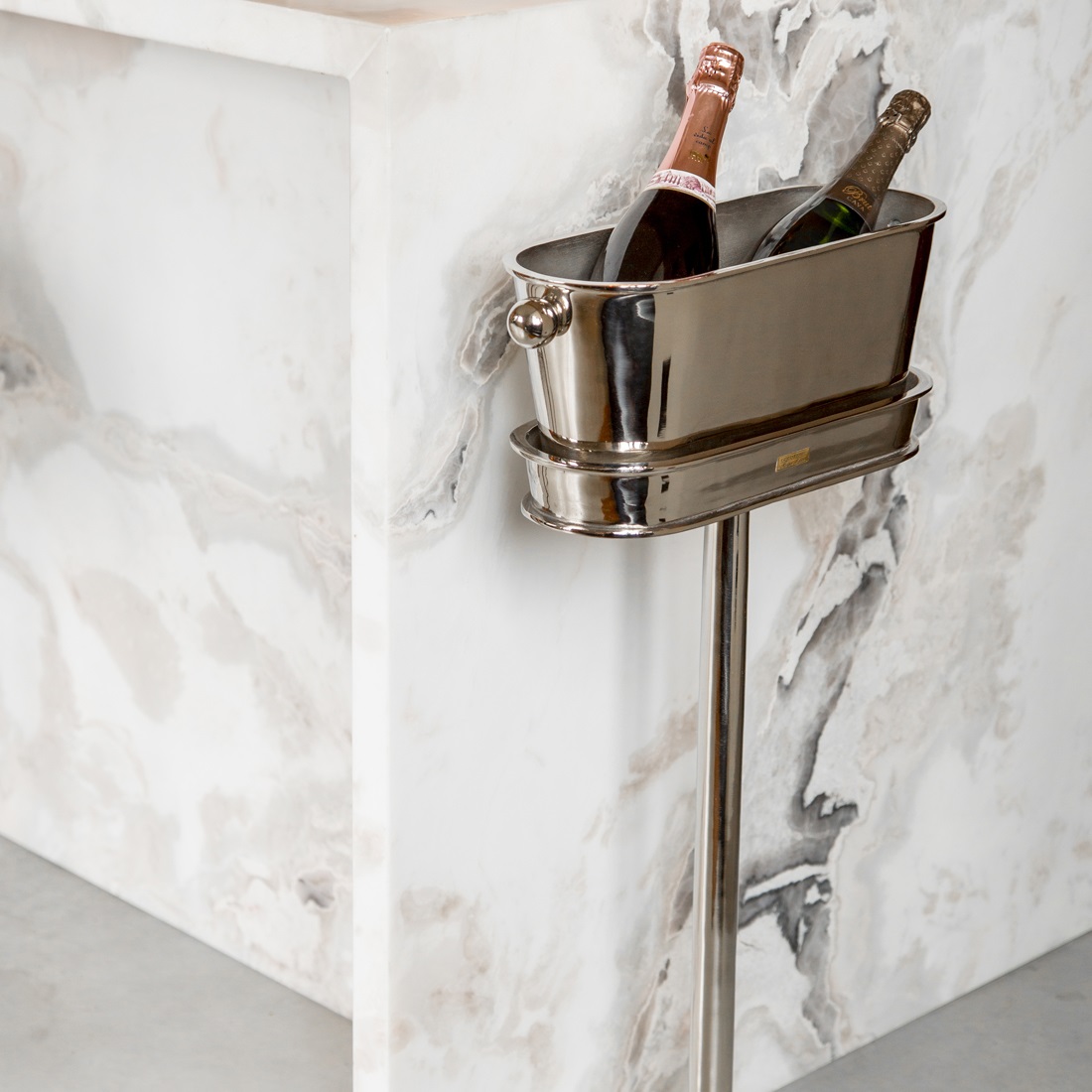 Wanneer je deze wijnkoeler aanschaft, kun je een verfijnde toevoeging aan je interieur verwachten. Het handgemaakte design in stijvol zilver maakt het een mooie aanvulling op elk servies en zorgt ervoor dat je wijn altijd perfect gekoeld is.